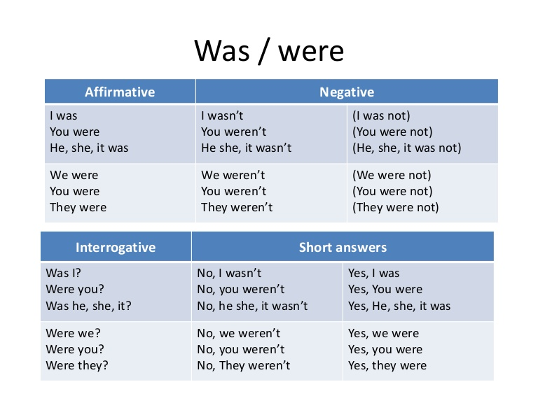 - Thể nghi vấn của were: Were You/ They/ We…? Câu trả lời: Yes, S + were/ No, S + weren’t)
